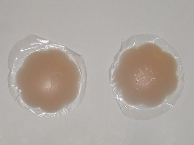THIN SILICONE MATERIAL CONCEALS WHILE THE FLOWER SHAPE CONTOURS TO THE BREAST.